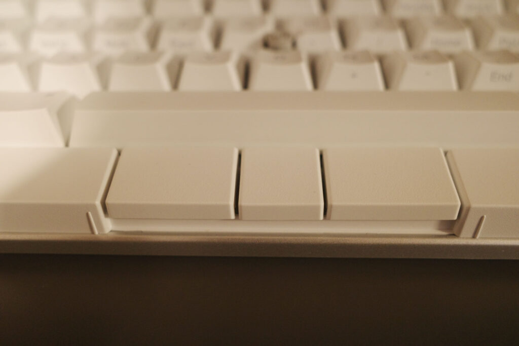 さらに、HHKB Studioの機能として、新たに追加されたのが、キーボードのわきっちょを指でさするように上下すると画面がスクロールできるんですね。しかし、これなぜかほとんど反応しない。反応したとして、上下の移動が早すぎて止まってくれない。正直使えなかった。