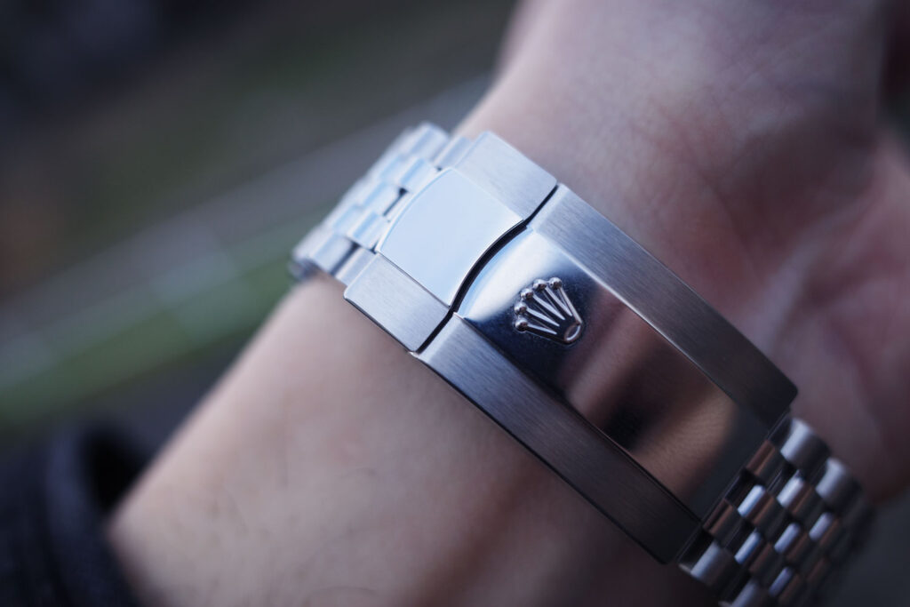外観だけが魅力なのではない。装着感が心地よい。ケース厚も程よく、スーツの袖口にも収まりがよく、日常の動きに自然と馴染んでくれる。ジュビリーブレスの滑らかな駒の動きも、肌に吸い付くような快適さがある。仕事中も、プライベートの外出中も、ふとした瞬間に腕元を見て「やっぱりこれを選んでよかった」と思わせてくれる。